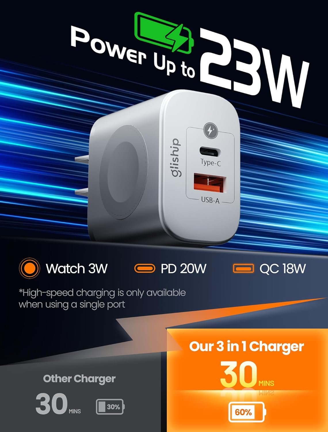gliship 23W iWatch Wireless Charger for Apple Watch/iPhone/Andriod/Earphone