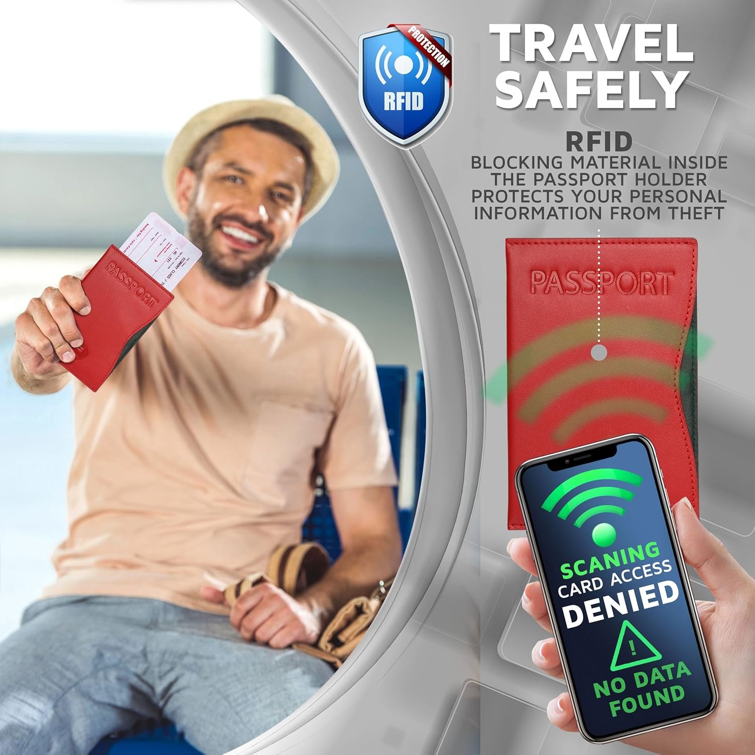 RFID Protection – RFID travel wallet helps prevent electronic data theft. Our RFID blocking passport holder for women/men protects your sensitive data so you’re free to travel the world with confidence, knowing your passport book and data are safe.