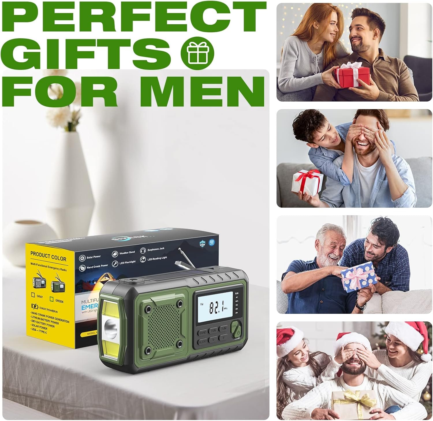 【Stay Prepared with Certified NOAA Weather Radio】 Our emergency weather radio is certified by the National Weather Service, Select WB band and tune in to your local weather station and receive automatic alerts with a loud SOS alarm and flashing bright light. Perfect survival radio for tornadoes, tsunamis, wildfires, hurricanes, earthquakes, and snowstorms. Don’t miss out, even while you sleep.