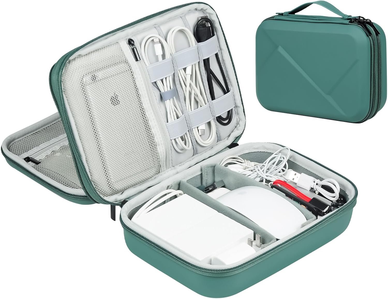 【Practical and Convenient】Electronics organizer travel case is equipped with a sturdy EVA carrying strap on the outside, making it more comfortable to use. In addition, the smooth zipper allows you to open the storage bag and retrieve items at any time. Portable cable storage bag is suitable for travel, work and other scenarios.