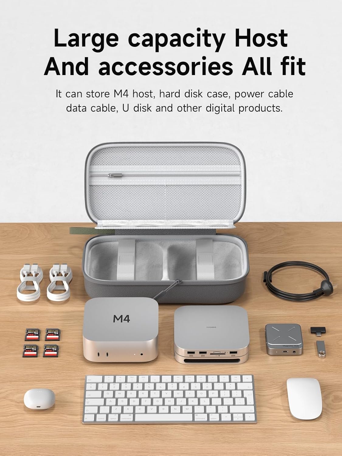 Partitioned Storage: Hagibis electronics storage bag has multiple internal partitions designed to store 2024 Mac mini M4 chip and MC60/MC60H Mac mini M4 Hub, hard disk cases, chargers, data cables, power banks, USB flash disks and other digital products. Large storage is suitable to take all the accessories which you need to go on a trip