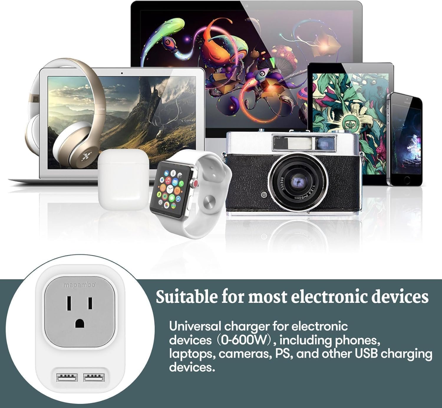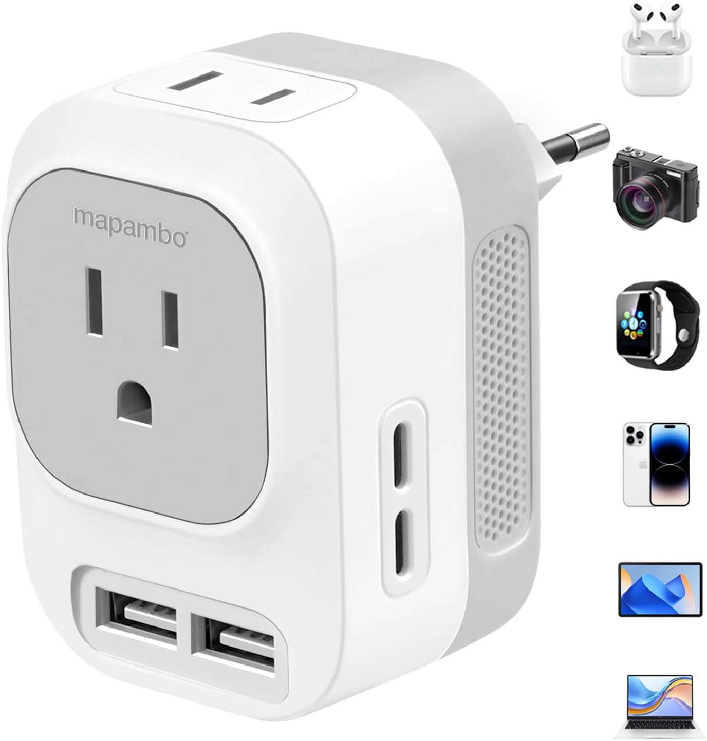 NEWLY UPGRADED TRAVEL DESIGN: Mapambo voltage converter is compact structure (3 * 2.1 * 3.4 inches) and light weight (0.3 pounds), save 70% of the space in the suitcase, making it the first choice for travel across the country, especially Europe. (NOTE: Not work in UK/ Ireland/ Scotland)