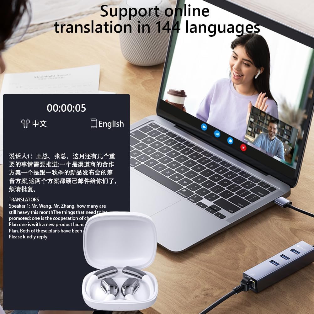 【Open Headphone Design】The translation earbuds real time adopt an open design with soft silicone ear hooks to ensure that they will not cause pressure or pain even if worn for a long time, and are easy to put on and take off.