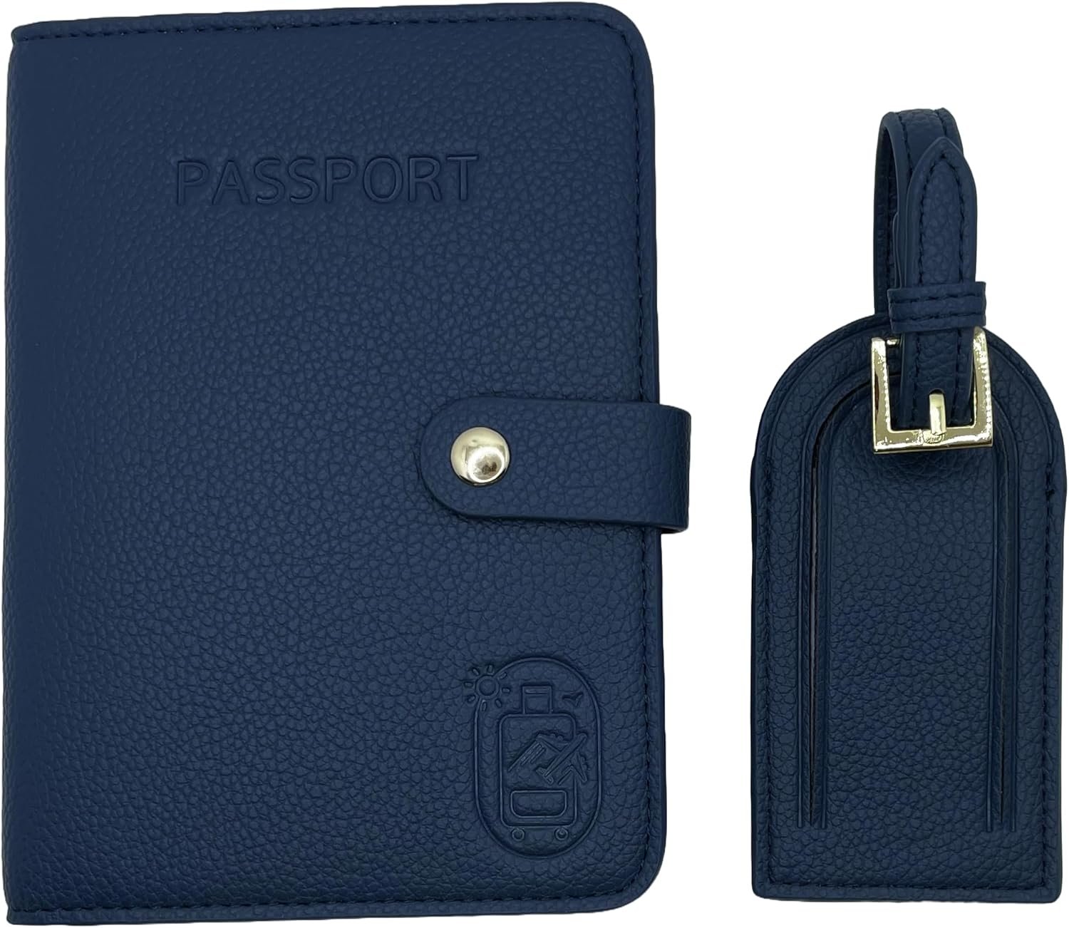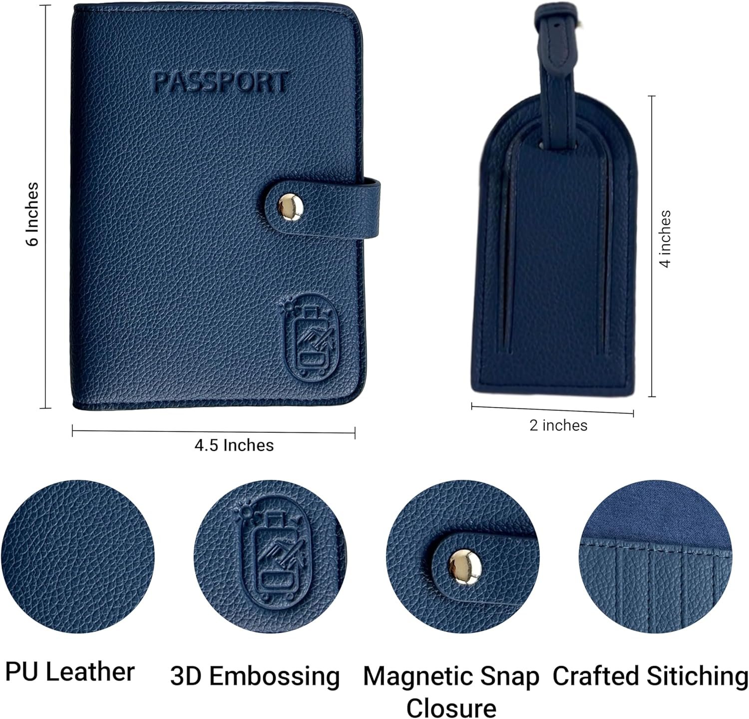 Passport Holder for Travel RFID and Airtag Slot for Women/Men, Faux Leather Passport Holder & Travel Wallet with Security Luggage Tag (Navy Blue)