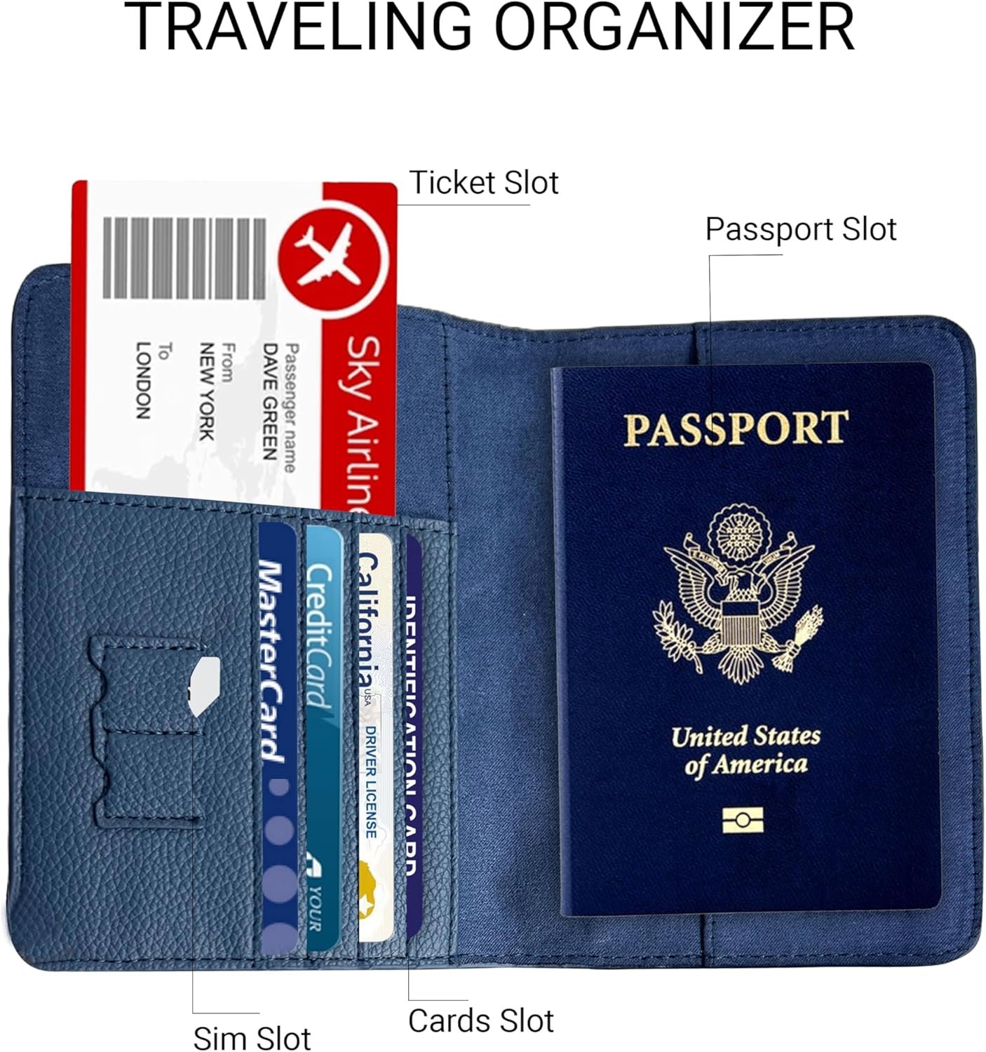 Travel Document Holder — Roam with confidence as you store all your important documents in one convenient travel wallet. Capable of holding your passport, credit and ID cards, sim cards, and airplane tickets in one organized passport case