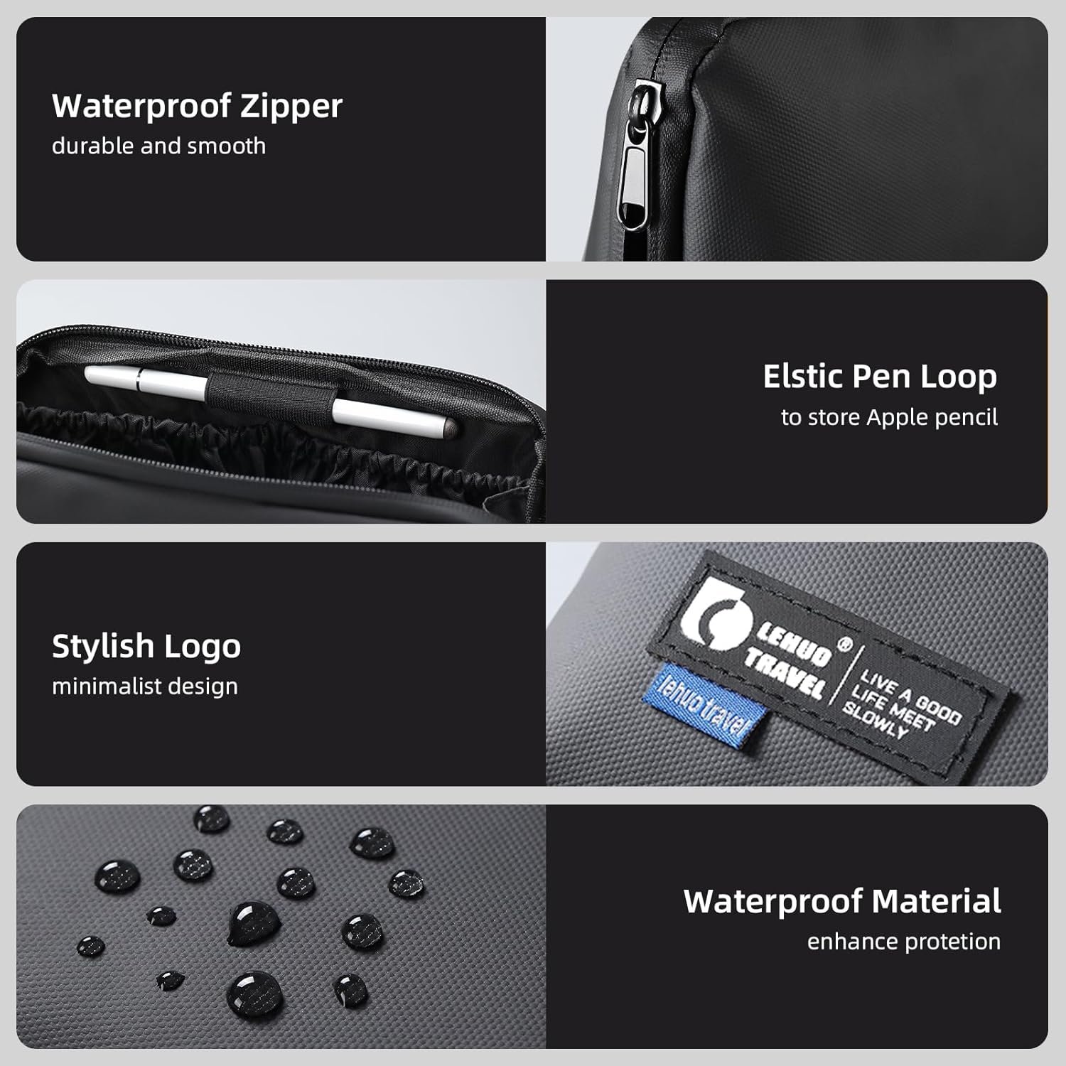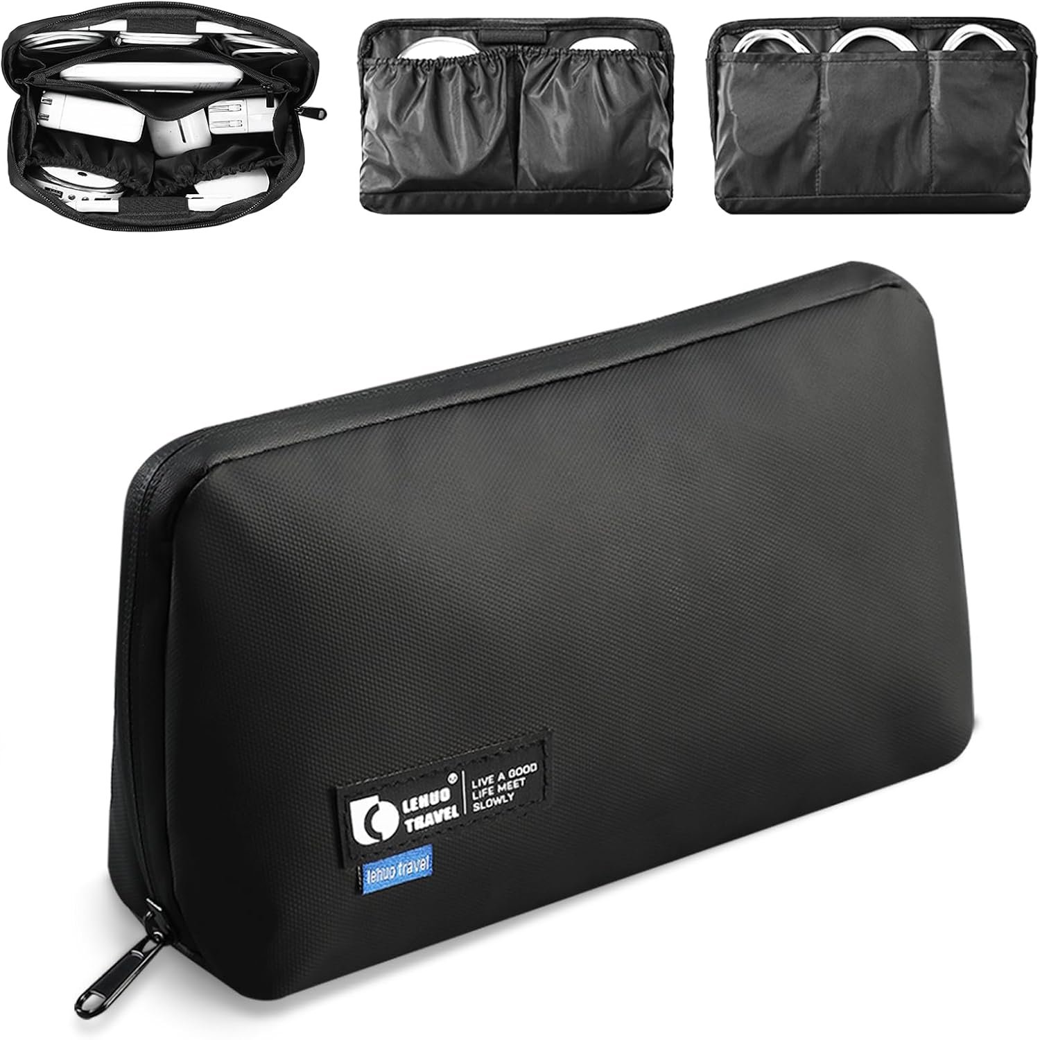 Premium Materials:Crafted with water-resistant polyester material, can securely stores electronic accessories while providing reliable protection against moisture.The 45-degree angled opening design ensures easy one-handed access while maintaining stability on flat surfaces.